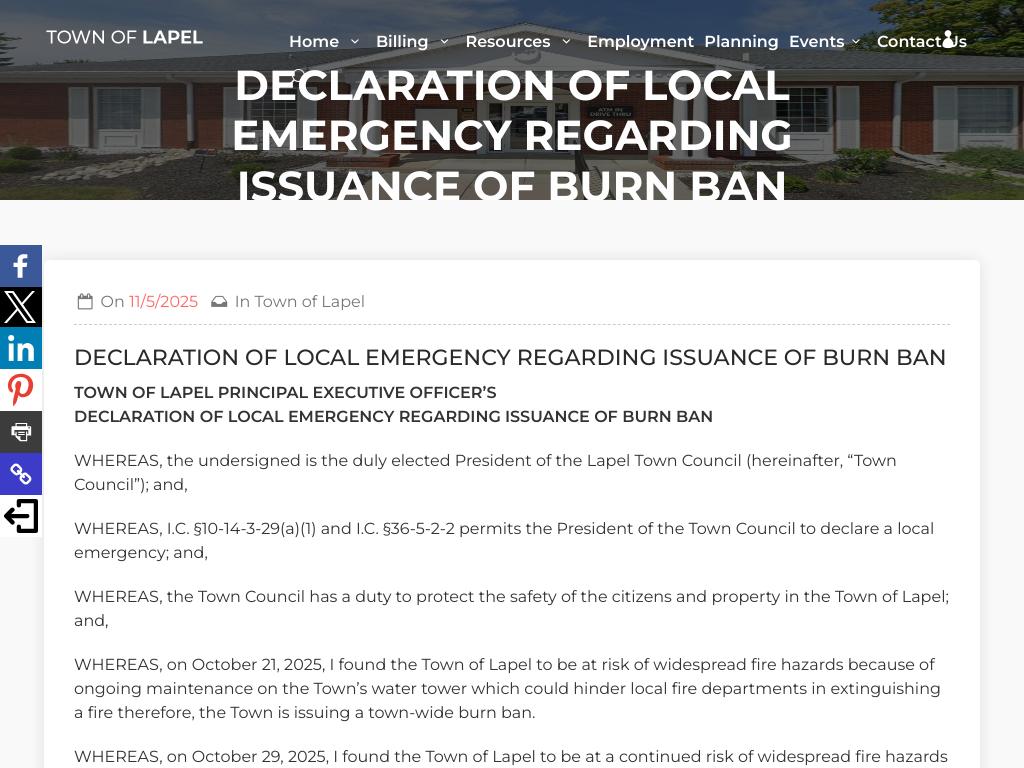 BREAKING: Lapel Town Officials Declare Local Emergency, Issue Burn Ban
