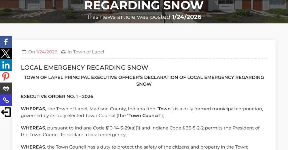 TOWN OF LAPEL PRINCIPAL EXECUTIVE OFFICER’S DECLARATION OF LOCAL EMERGENCY REGARDING SNOW