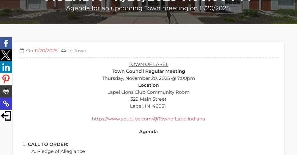 Town Of Lapel: The Agenda for the Thursday 20th Town Meeting has been made available on the Tow…