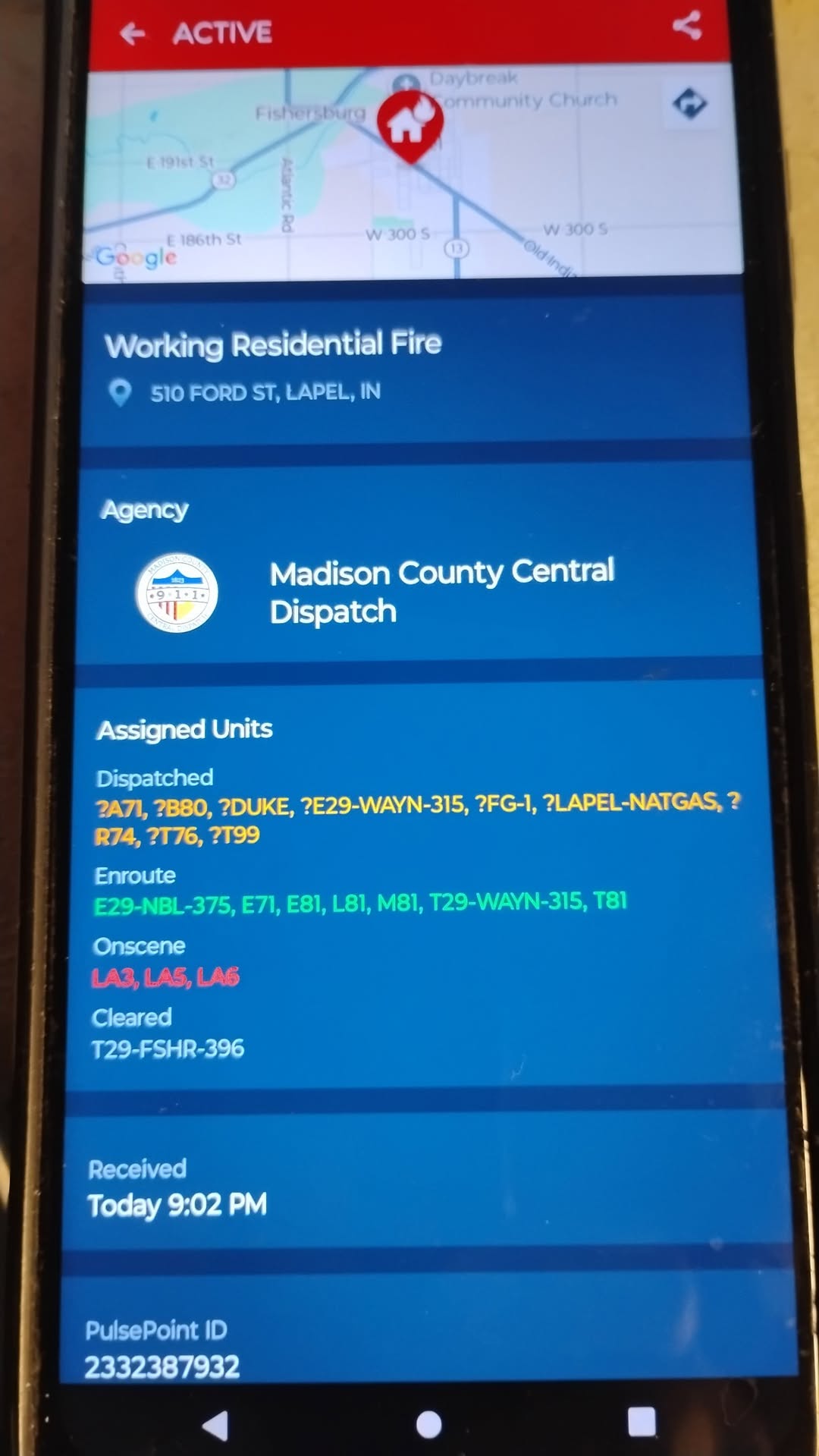 Working fire in Lapel – posted at 9:11 PM on November 1, 2025